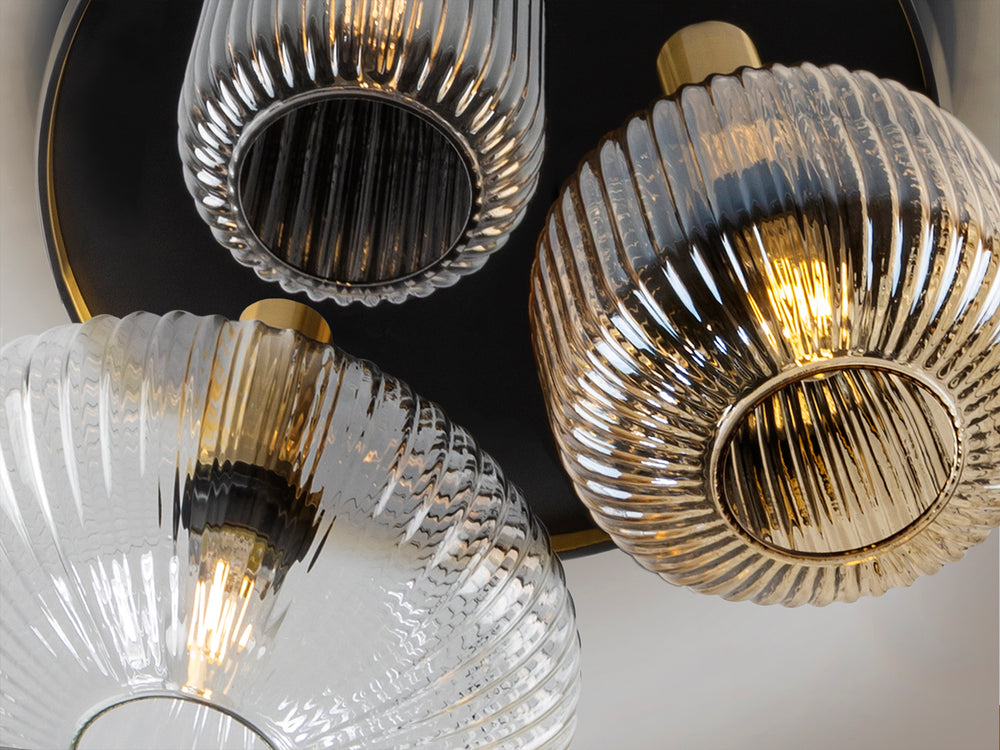 - Color / Acabado: Negro y latón con 3 tonos de cristal