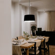 Lámpara de techo con pantalla negra encintada y portalámparas negro. Esta lámpara colgante crea un efecto acogedor y cálido gracias a la difusión de la luz a través de la tela. Su aire clásico y elegante combinará a la perfección con cualquier estilo decorativo. Gracias a su diseño y materiales cuidados llenará la estancia de personalidad dándole un toque distinguido. Con casquillo E27