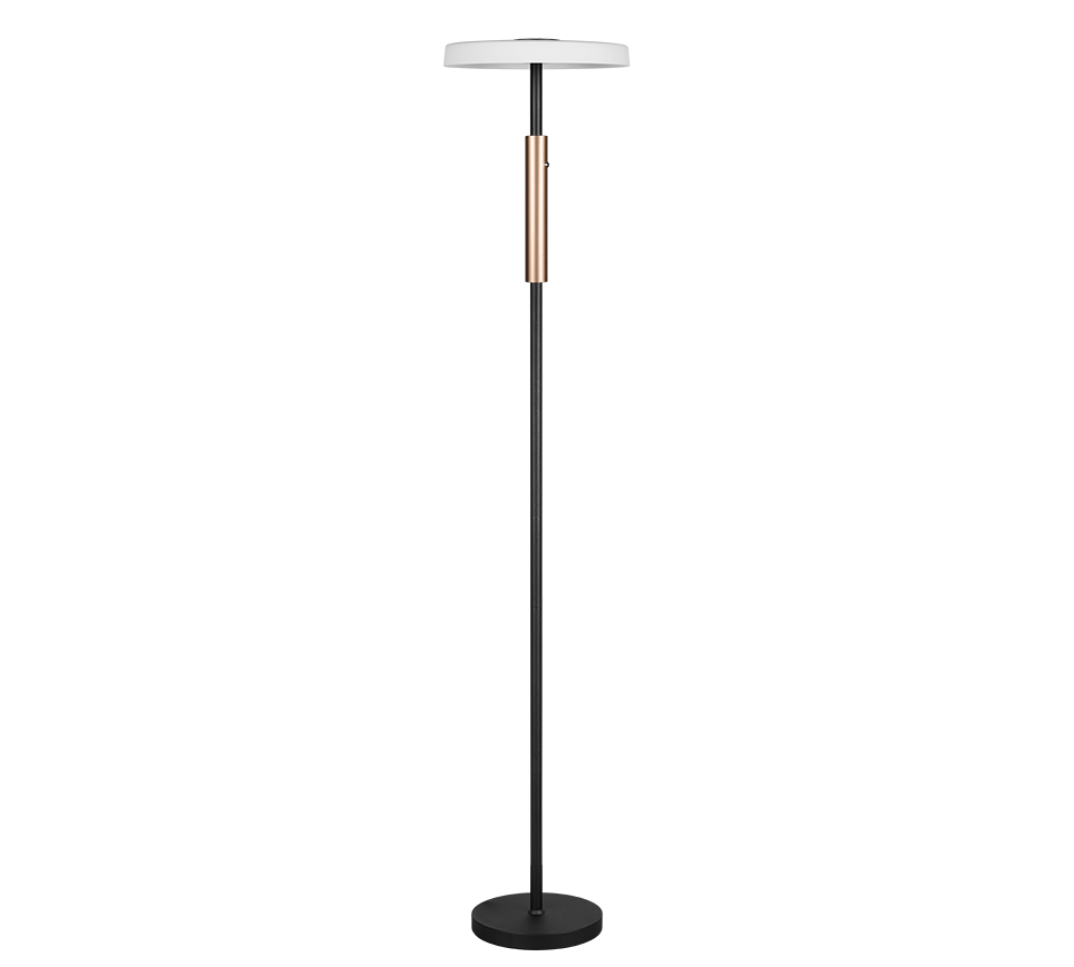 CELESTE es un Lámpara de pie de Trio diseñado para iluminar con eficiencia y estilo. Equipado con tecnología LED de 15W, ofrece 1750 lúmenes a 3000K (luz cálida).