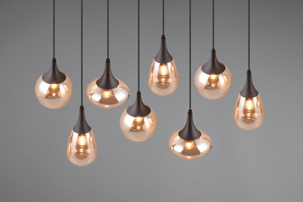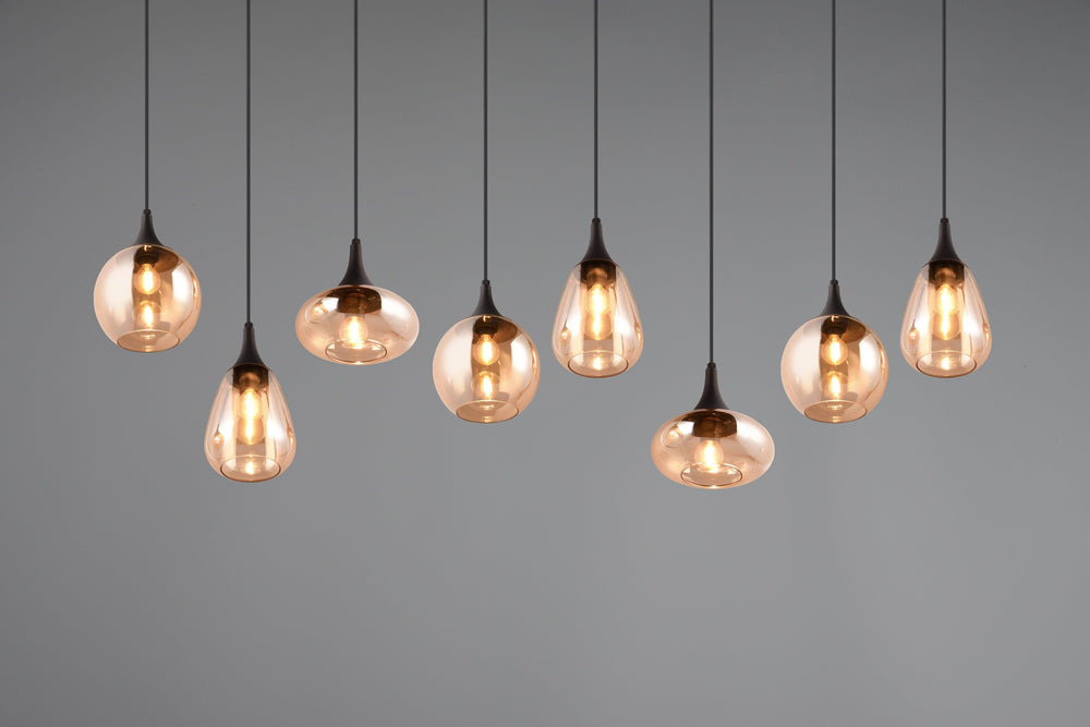 Lámpara de techo colgante Trio Lumina 8 luces negro mate y ámbar 150cm 317000813