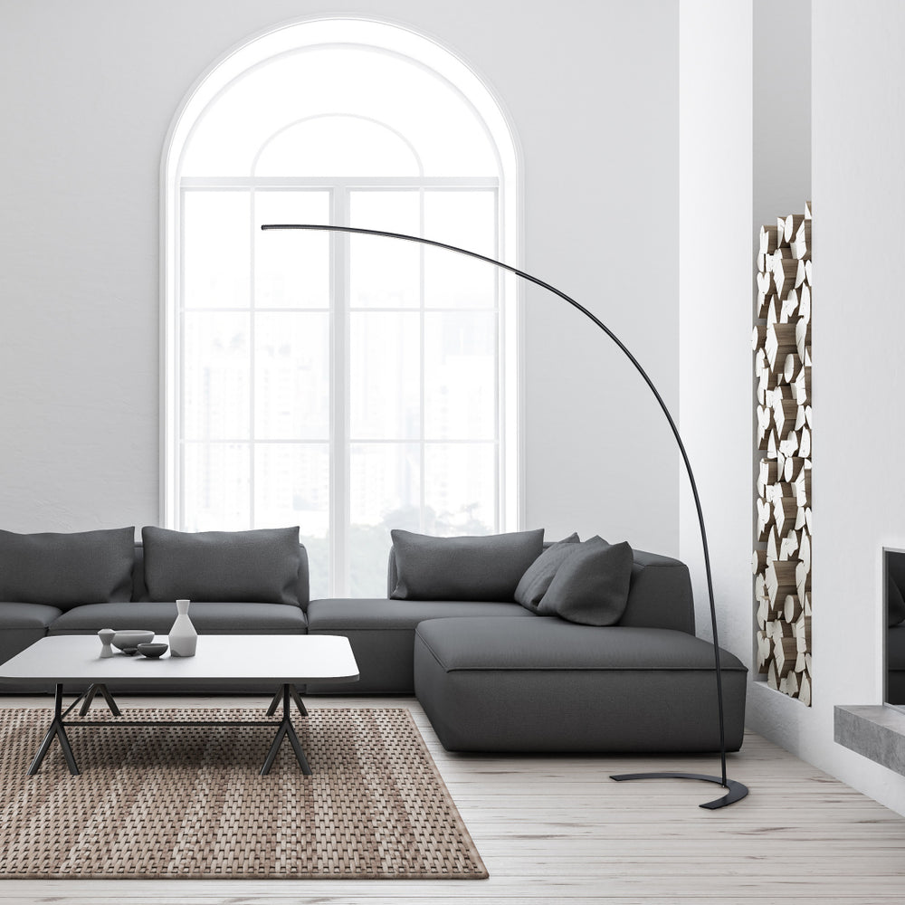 Trio Shanghai es un Lámpara de pie de Trio diseñado para iluminar con eficiencia y estilo. Equipado con tecnología LED de 18W, ofrece 2000 lúmenes a 3000K (luz cálida).